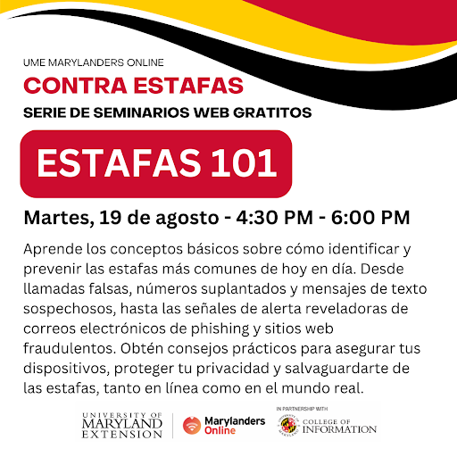 PICTURE 6: In August, Marylanders Online hosted “Estafas 101”, a fully Spanish version of the Scams 101 workshop, as part of the program’s Anti-Scam Webinar Series