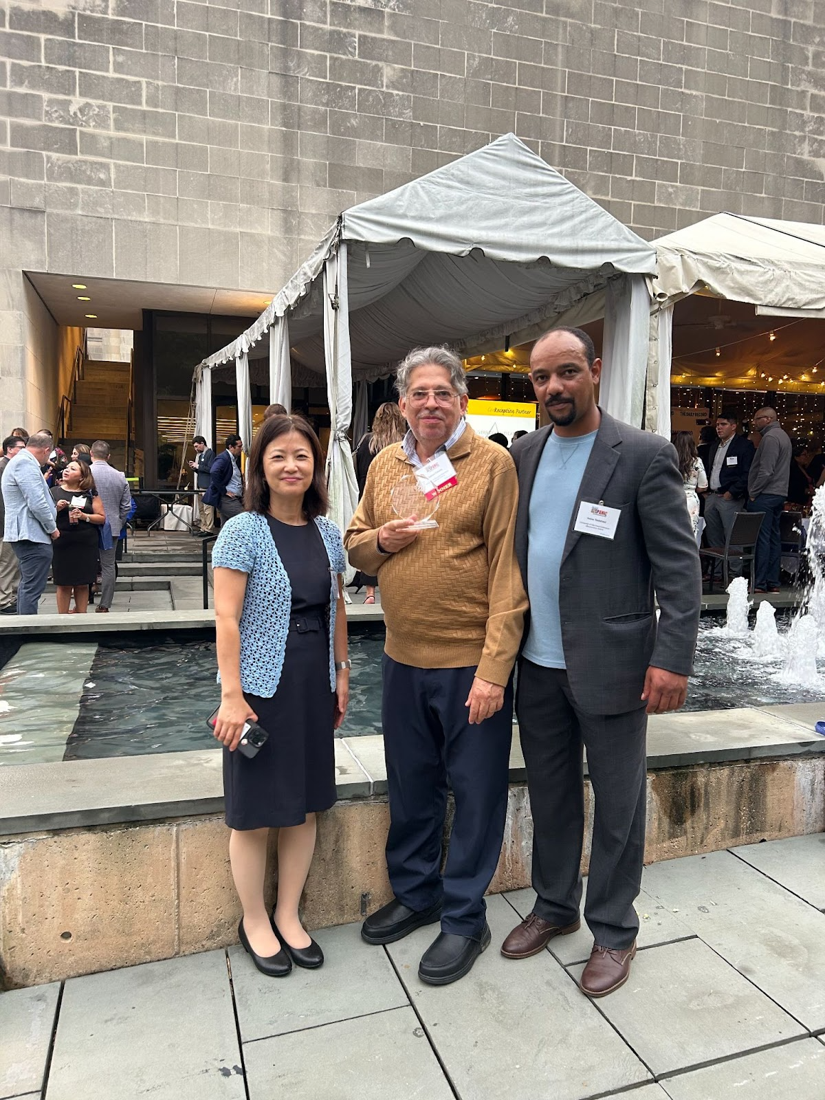 PICTURE 1: Dr. Jinhee Kim, Professor, UME Associate Director and Associate Dean, Gabriel Fumero, UME Marylanders Online Tech Educator, and Isaias Tesfalidet, Marylanders Online Project Director, receive the 2025 Maryland Hispanic Leadership Empowerment Award on September 25, 2025.